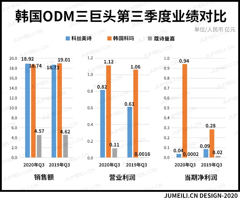 尽管韩国化妆品市场在疫情影响下而持续收缩,但韩国三大ODM企业——韩国科玛、科丝美诗、蔻诗曼嘉都表现良好。