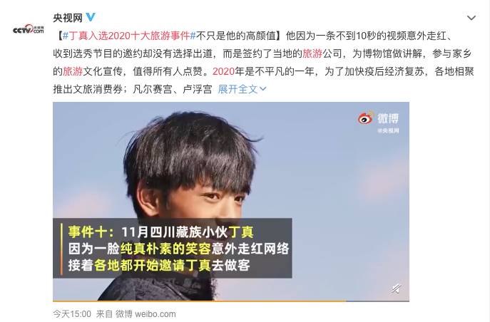 12月的第一天,丁真的热度仍在持续,#丁真入选2020十大旅游事件#这一话题再度引发了关注。