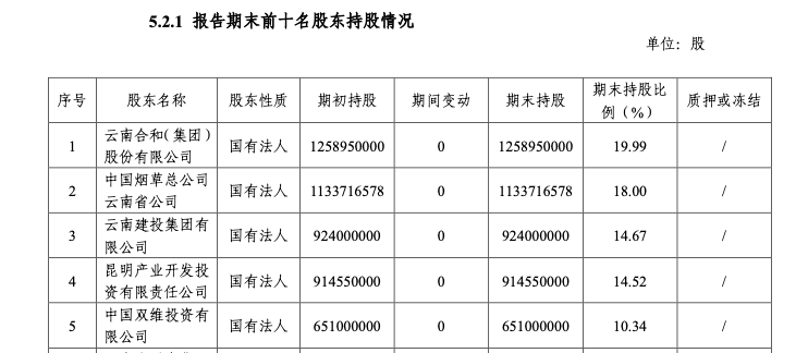 股权结构方面,该行的前五大股东分别为:云南合和(集团)股份有限公司持股比例为19.99%,中国烟草总公司云南省公司持股比例为18.00%,云南建投集团有限公司持股比例为14.67%,昆明产业开发投资有限责任公司持股比例为14.52%,中国双维投资有限公司持股比例为10.34%。