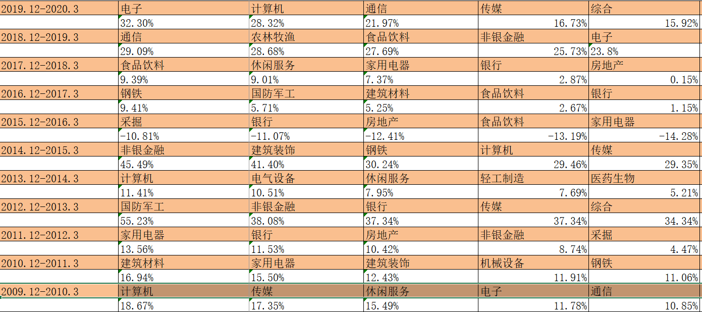 再具体到不同的行业板块,不同的跨年行情中,总有不同的板块登台唱大戏。