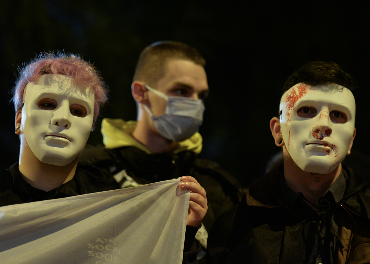 于是,PiS在今年改变策略,不再希望通过议会,而是指示已被同盟、亲信塞满的“宪法法庭”来通过类似的堕胎限制,企图以此躲过公众的注意,且这个法庭所做出的决定是不能通过上诉来改变的。这一次,尽管波兰面临着第二波新冠肺炎疫情,走上街头的女性还是达到了史无前例的数量。她们不仅出现在街头,还第一次走进教堂,穿着美剧《使女的故事》中的使女服装,通过打断弥撒等方式表达不满——由于教会在一部分波兰人心中的神圣地位,这种做法是之前的抗议者几乎不会采取的。