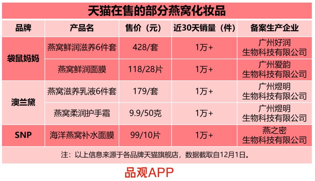 品观APP发现,涉嫌无备案先上市的乱象,在燕窝化妆品市场并非个例。