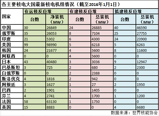 中国核电建设正在加速。2015年,中国共有8台核电机组获批。截至2015年底,中国投入运行的核电机组共30台,在建的为24台,在建核电机组数量世界第一。