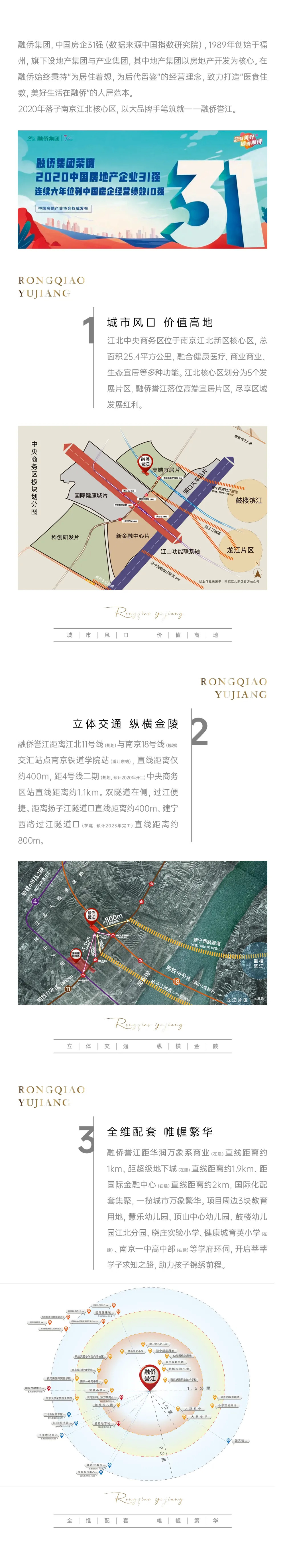 本项目推广名为融侨·誉江,地名办核准名为誉江府;开发公司为:南京融杰房地产开发有限公司。本资料中所有图片、文字、数据等仅为要约邀请,不作为销售承诺和合同附件;相关宣传内容不排除因政府相关规划、规定及出卖人分期规划、未能控制等原因而发生变化;教育配套信息来源于南京市教育主管部门、南京市江北新区管委会,仅供参考。学校的名称、建成时间、开办学性质、办学规模、学位设置、开学时间、招生条件、收费标准及招生区域划定等均存在未确定或者调整的可能,出卖人对此不作任何承诺,须以政府教育主管部门及校方的最新政策为准;本资料仅示意项目与交通设施、公共设施、周边环境等的地理关系,不反映各部分间的实际距离。交通配套信息来源于2020年1月南京市交通主管部门,市政配套信息来源于2020年1月《南京市公共设施配套国家标准》,仅供参考。交通规划设置、市政配套设置不排除因政府规划、政策规定及出卖人未能控制的原因而发生变化,本资料旨在提供相关信息,不代表着出卖人对此作出要约或承诺;四号线2期信息来源于《江北新区直管区2020年城建计划》;过江隧道信息来源于《长江干线过江通道布局规划(2020-2035年)》;本宣传资料所涉及的户型仅供示意参考,家具、陈设等非交付标准,不属于交付范围。不同户型的面积尺寸,功能布局,空间分割、门窗/管井形态位置等均有不同;相同户型因楼栋、楼层、单元等差别,局部结构、面积等也可能不同,具体以销售合同的约定为准、买卖双方的权利义务以双方签订的《商品买卖合同》及补充协议、附件等文件为准;预售许可证号:2020700045;本宣传资料制作时间为:2020年12月5日,发布有效期至2020年12月31日,以上信息发生变化时,本公司不再另行通知或公示。