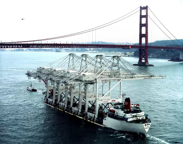 振华4号运送奥克兰桥吊过美国金门大桥