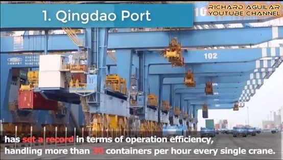 “Hey,你们听说过自动化集装箱码头吗?那是只有在中国才能看到的码头哟!青岛港集装箱码头是亚洲第一个由5G网络支持的完全远程操控港口,其装载速度是目前世界上最快的:平均每个吊车每小时可以处理39.74个集装箱,完全运作的青岛港口在9小时内可以处理1800个集装箱!!”