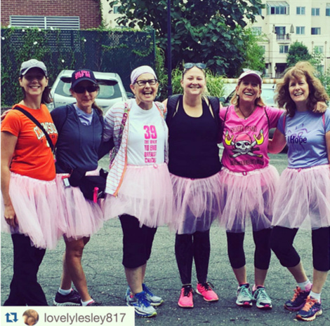 为了提高人们对乳腺癌的认识,Bob和Linda组织了游行,一群身穿粉色蓬蓬裙的男女老少浩浩荡荡: