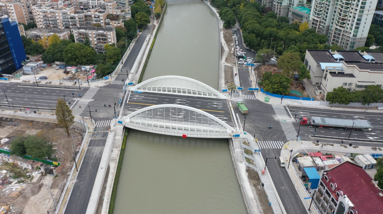 2020年12月6日10时,由上海城投公路投资(集团)有限公司建设,上海市机械施工集团有限公司施工的昌平路桥正式建成通车。该桥又名“苏河之眼”。