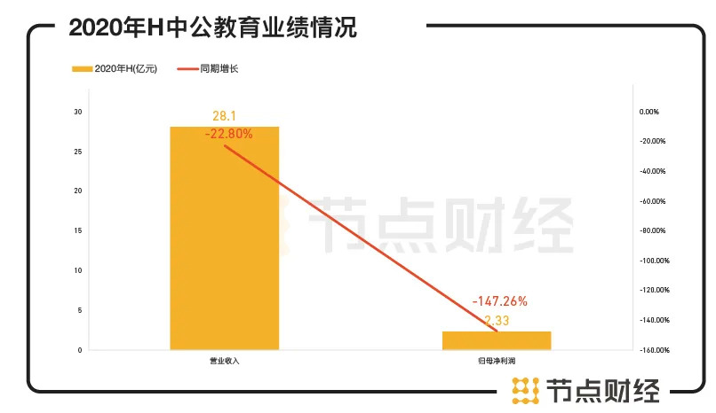 今年受到疫情影响,公考行业遭遇不小的冲击,一路高歌猛进的中公教育增速放缓,上半年由盈转亏。半年报显示,中公教育实现营业收入28.1亿元,较上年同期下降22.8%;归母净利润亏损2.33亿元,较上年同期下降了147.26%。