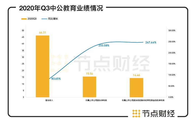 营收、净利润双丰收的原因,一部分是因疫情影响,此前原本4月份举行的公务员省考基本都延期至8月份,导致中公教育收入确认顺延至三季度,从而出现三季度业绩高峰。