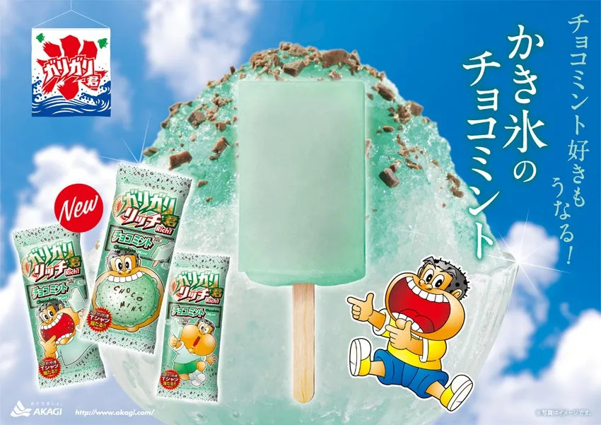日本畅销不衰的人气冰棒系列在2020年夏天推出的新产品。产品主打近年来最具人气的巧克力薄荷口味,配合爽脆的刨冰口感。