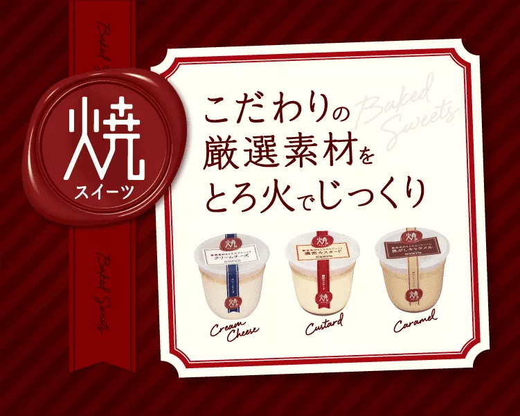 表面使用文火烧成焦香风味的表皮,底部的布丁质地浓厚,口感坚实;使用多种奶油起司组合调味,口味独特。