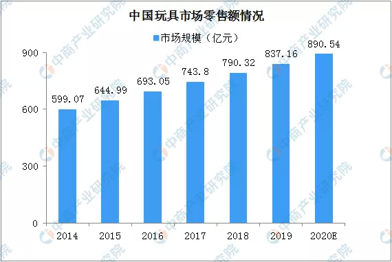 根据《2019年中国玩具和婴童用品行业发展白皮书》的数据,2018年全国玩具零售规模达704.8亿元,同比增长9%。