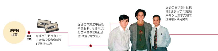 张和平与许钟民更广为人知的合作缘起自京文唱片公司,当时许钟民不满足于做唱片原材料,“想往主流靠一靠,挑战一下自己”,他直接与北京文化艺术音像出版社合作,成立了京文唱片。