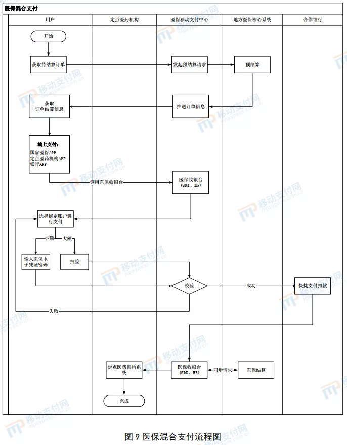 2020年4月底,医保局发布了《医疗保障信息平台医保移动支付技术规范》,其中详细介绍了医保混合支付模式下的医保移动支付内容。