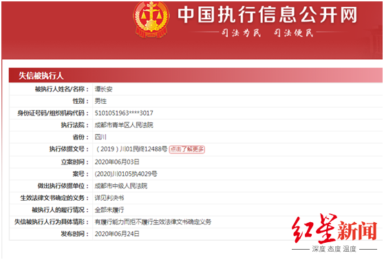 6月3日,谭长安再被列入失信被执行人”
