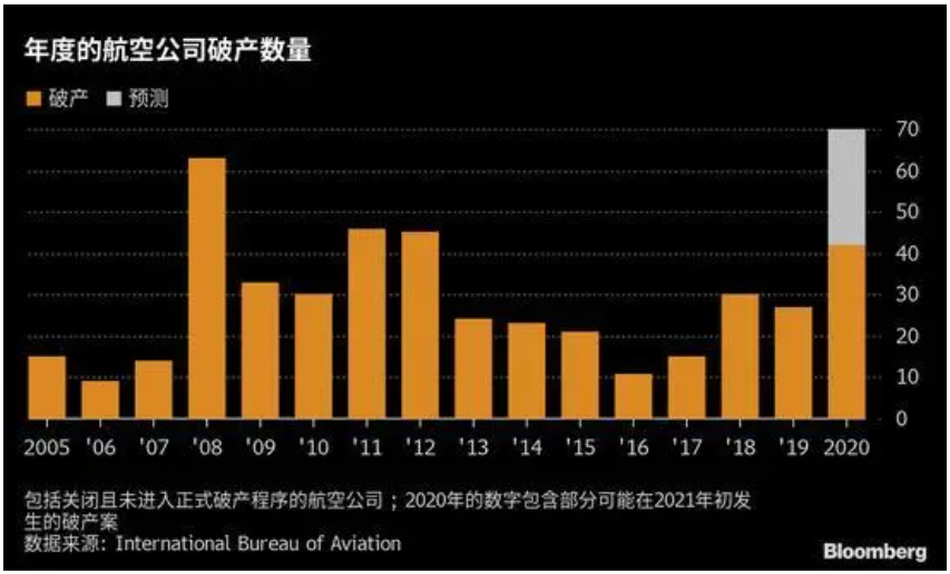 而一些航空公司早已撑不下去,廉价航空公司“亚洲航空日本”,10月宣布放弃继续开展业务,11月正式申请破产。据旅游数据公司Cirium统计,自今年1月新冠疫情爆发以来,截止10月,全球已有43家商业航空公司破产。
