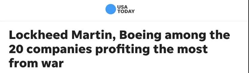 △《今日美国报》:“洛马”、波音等20家公司从战争中获利最多。