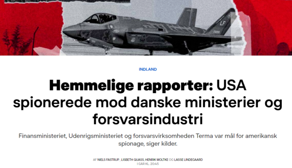 据丹麦媒体上月披露,2015年至2016年,在丹麦考虑采购一批新型战斗机之际,美国国家安全局(NSA)利用与丹麦方面特殊的情报合作关系,对该国政府部门和军工企业等机构实施了大范围监控,同时对丹麦的几个邻国进行间谍活动,秘密搜集参与竞标的欧洲军工企业情报,最终帮助美国“洛马”公司生产的F-35隐形战机赢得了丹麦政府的订单。