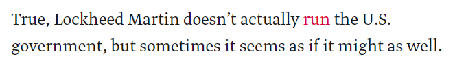 纽约《独立月报》(The Indypendent)评论称,“洛马”公司虽然不是美国政府的掌门人,但有时它却似乎可以掌控美国政府。