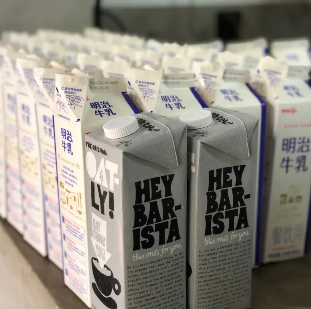 上周写过的沙县咖啡,老板每天都会把用完的空牛奶盒,摆在吧台,因为店内出杯量大,空盒子能在吧台摆成一面墙。