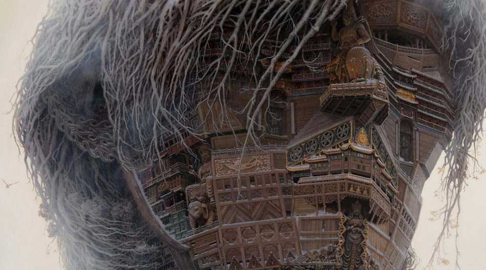 谈妥之后得开始找适合用作参考的照片,然后是风景素材。找自己旅游时拍的照片,也找网上的素材,但因为合适的太少,杜昆只能靠脑补——先吃透建筑结构的原理,再做出合乎逻辑的人形寺庙。