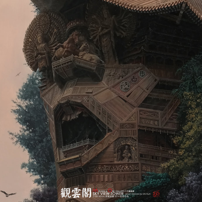 作为一个画家,杜昆尤其擅长画建筑。一边是传统宗教寺庙里的神像,另一边是时下受追捧个性前卫的“神”,杜昆称这种碰撞是“迟早的事”,而且是“非常有意思的化学反应”。
