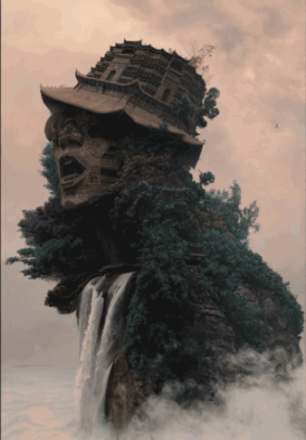摇滚带着操翻全世界的聒噪,而这些亭台楼阁、道观寺庙,藏在山林海石之中自带慑人的安静与威严;现在竟然成了让人叹为观止的“寺身人面”像。