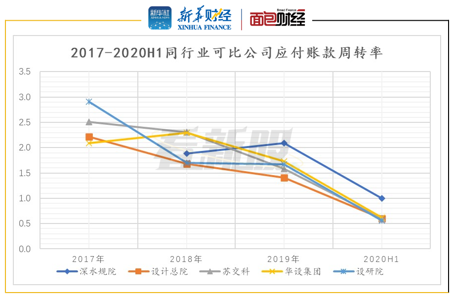 2020年上半年,深水规院应收账款周转率下降至可比公司均值以下,应付账款周转率在可比公司中最高。同行业可比公司大多涉及或从事公路行业勘测设计,而深水规院从事水利行业勘测设计。从客户背景上看,公路和水利虽都为公用基础建设行业,但公路行业社会资本参与较多,客户对象中企业较多,而水利行业基本由政府资本主导。正是因为客户对象存在差异,公路行业客户付款进度相对较快,水利行业客户付款的时候主要根据建设周期和政府资金下发计划等。因此一定程度上导致公司运营效率较低。