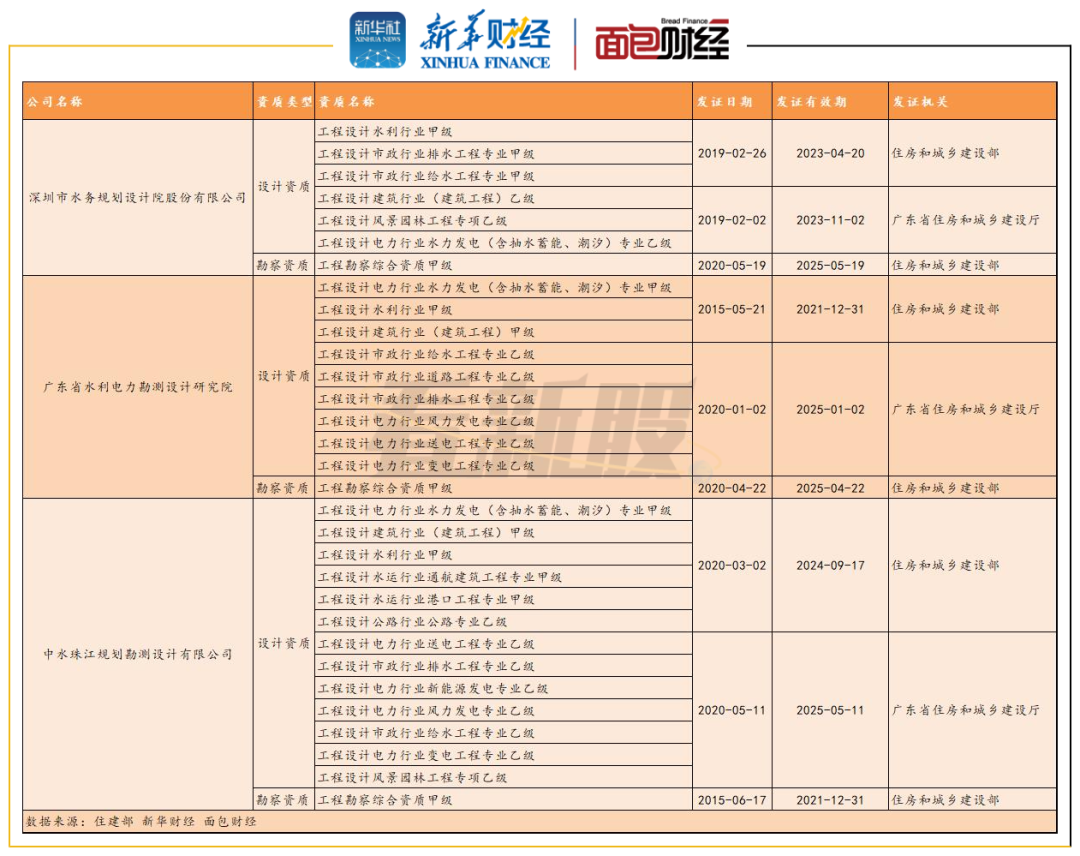 图7:广东省内3家水利行业甲级设计单位业务资质情况