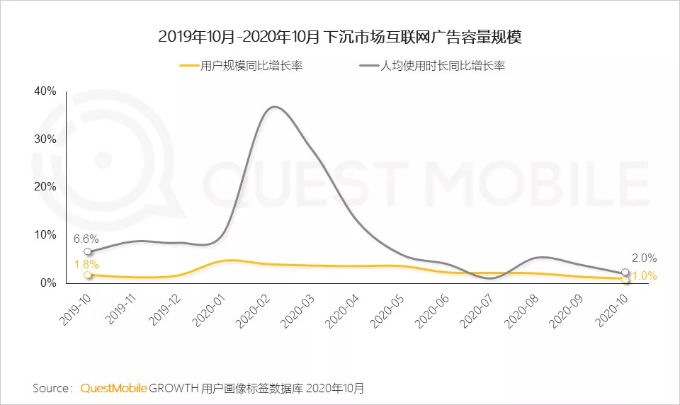 2、主要行业在下沉市场因各方面因素决定呈现不同的增长差异,整体市场受移动互联网影响逐步加深