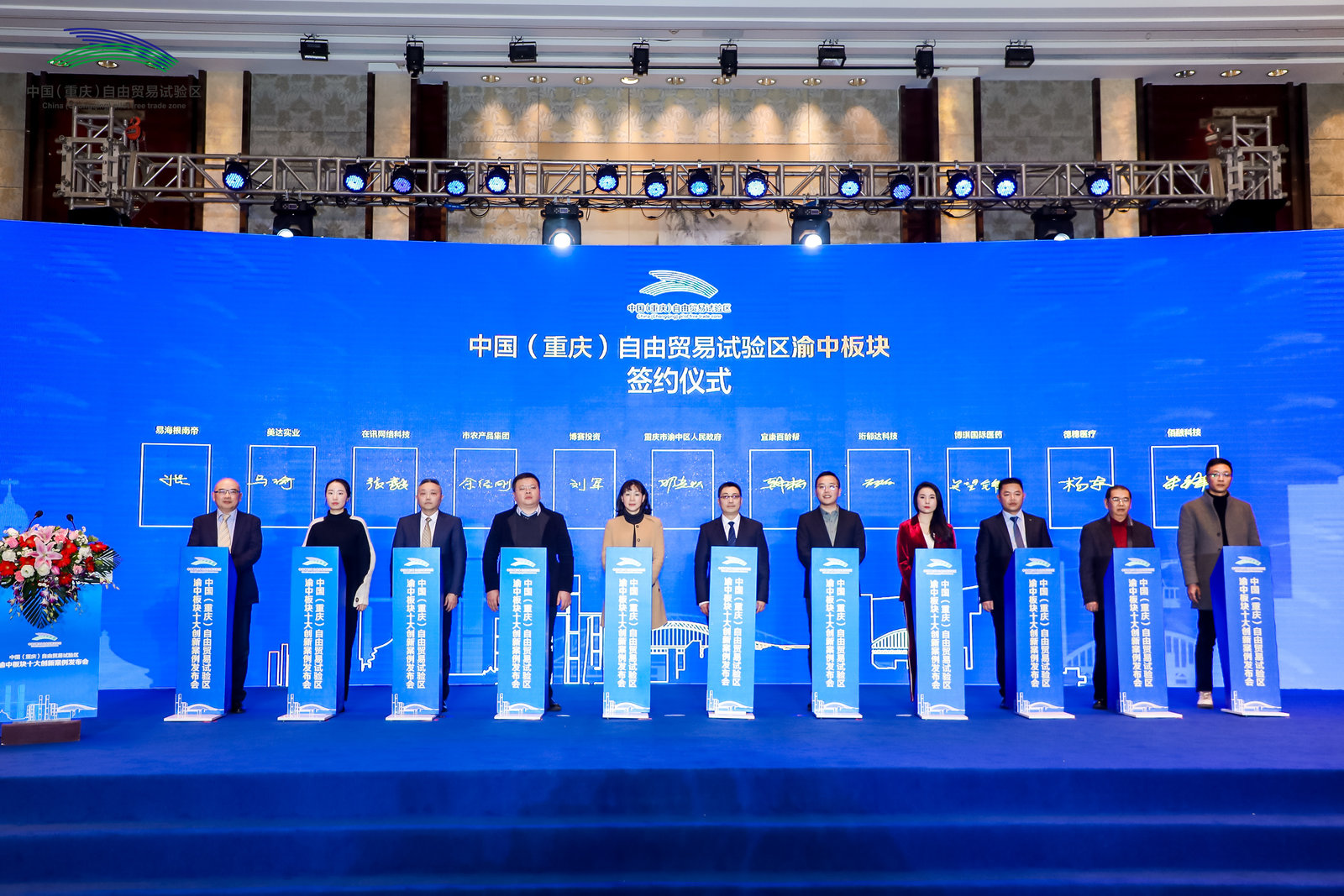 发布会上,渝中区还举办了自贸渝中板块投资贸易重点项目签约仪式。签约仪式上,渝中区政府与宜康百龄帮康养中心、珩郁达科技、市农产品进出口公司等10个投资贸易项目签订合作协议。项目投资总额达195亿元,其中,投资类签约额35亿元,贸易类签约额160亿元,主要涉及现代金融、现代商贸、大健康、数字经济、服务贸易等多个领域。