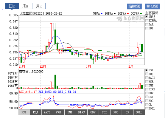 但比高集团的业绩和股价走势都不尽如人意。股价长期在0.3港元以下徘徊。而自2010年以来,只有2012年4月-2013年3月这一财年比高集团实现盈利,其余均为亏损。截至2015年12月底,比高集团第三财季亏损由373万港元扩至949万港元,营收则为1549万港元,按年下降12.8%。