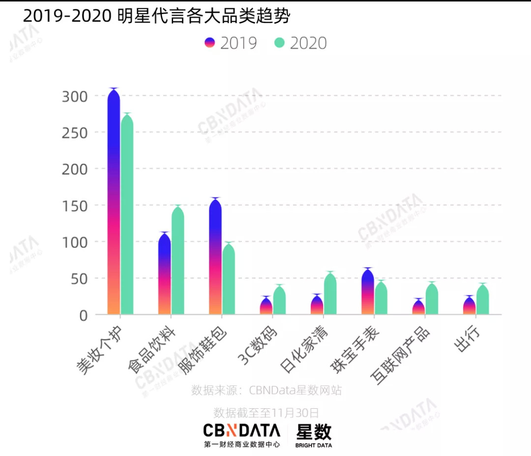 C站统计发现,在双11期间新宣的代言人中,偶像的比例已经远远高于演员和歌手。