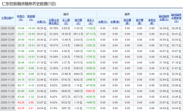 值得一提的是,12月9日晚间,深交所公告,暂停仁东控股股票融资买入,恢复时间另行通知。