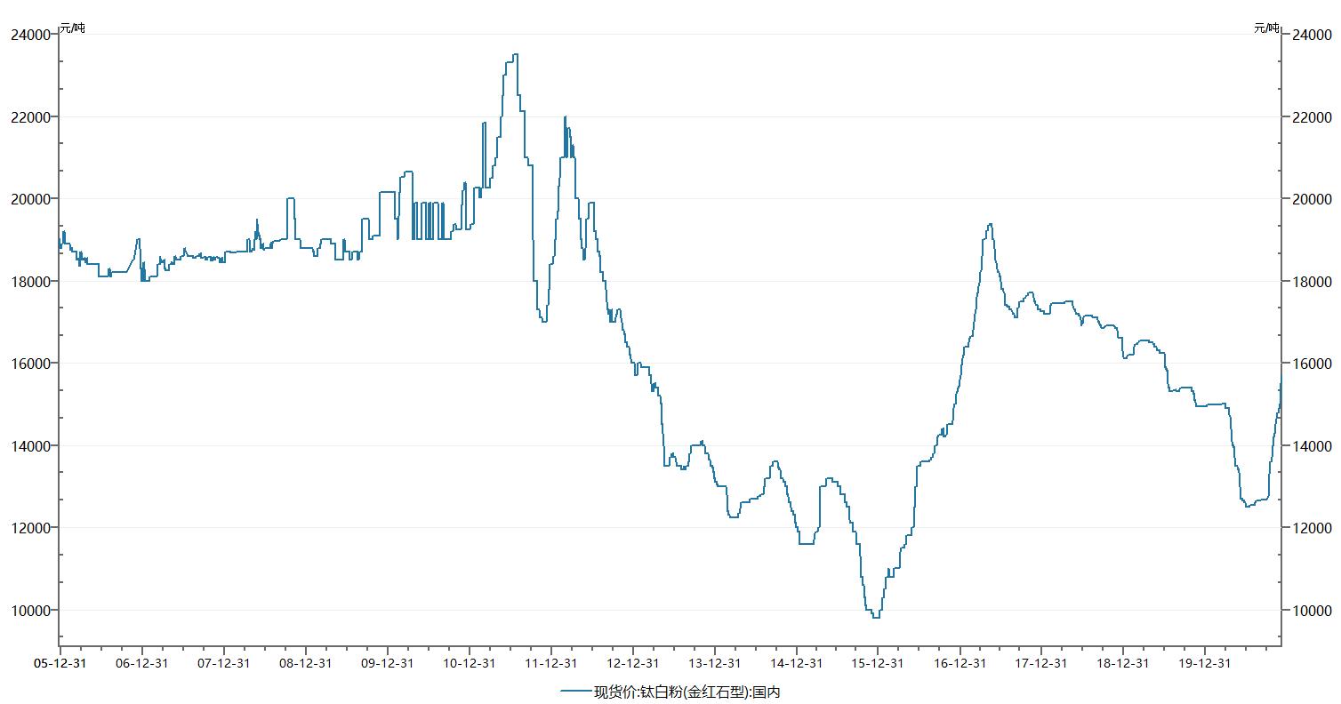从历史看,钛白粉主要产品类型金红石型钛白粉的价格存在周期波动。2006年到2008年,价格基本维持在18000元/吨以上;2009年二季度开始,受益于下游涂料、塑料、造纸行业的回暖,国内钛白粉需求旺盛,价格也随之上涨,最高价格曾一度接近24000元/吨;但从2013年开始,受前期产能扩张较快,且下游需求疲软等因素影响,价格经历了一轮剧烈下跌,最低一度击穿10000元/吨;2016年受国家环保及产业政策要求趋严、行业集中度进一步提升、行业定价信息及传导更加透明、下游需求增加等因素综合影响,价格经历一波反弹;2020年受新冠疫情冲击,钛白粉价格一度受到重创,但三季度开始剧烈反弹,目前价格在15700元/吨。