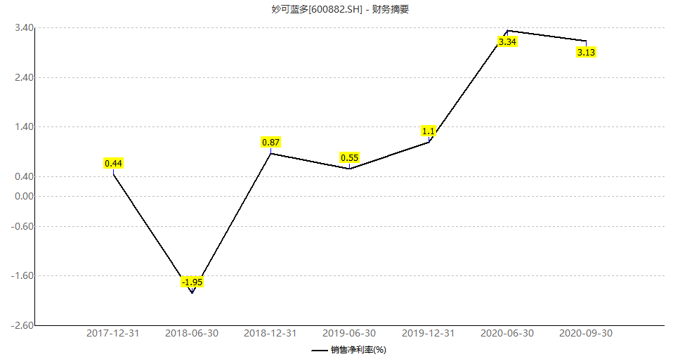 事实上,长期以来妙可蓝多销售净利率并不高。2018年公司销售净利率不足1%,到2019年上升至1.10%,2020年前三季度公司销售净利率提升至3.13%后,仍然是一个难言合格的净利率水平。