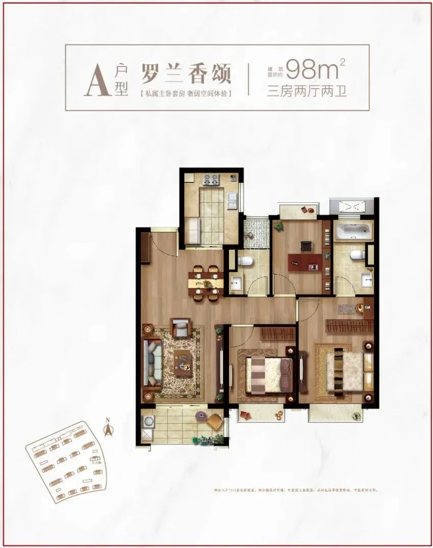 值得一提的是,建筑面积约98㎡的户型不仅是板块内难得的100m以下还能拥有双卫的产品!更是板块唯一内100㎡以下户型主卧配置浴缸的项目!据置业顾问介绍,此举既提高了清晨生活效率,更增加了生活的隐私性以及舒适性!
