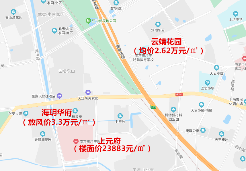 并且,值得一提的是,距离项目不远的处便是南京江宁地王项目-上元府,这项目仅面价就已达23883元/㎡,此外距离即将首开的海玥华府项目也很近,该项目放风价约3.3万/㎡!