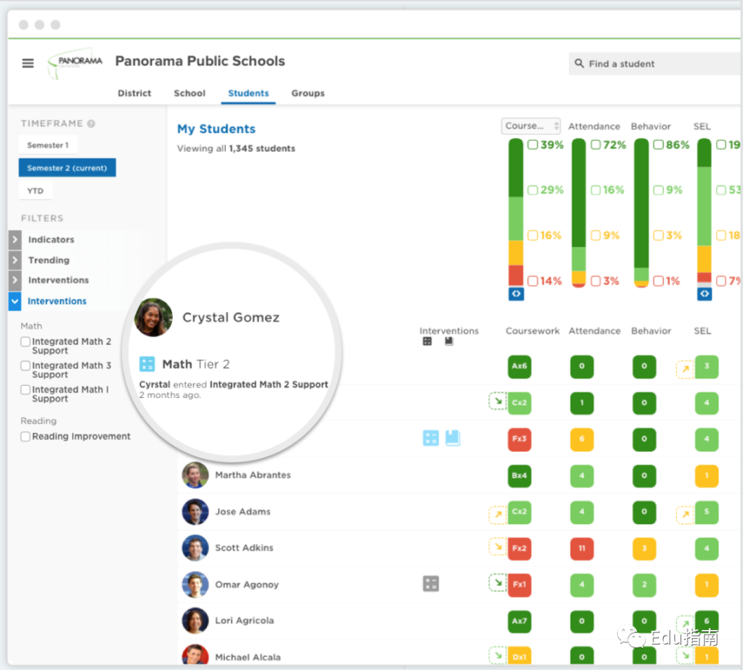 1、Panorama全景教育公立学校学生数据分析SaaS。成立于2012年,位于美国波士顿。目前,“为11,000所学校和1000万学生提供服务”。Panorama帮助教育工作者使用数据,来满足每个学生的需求,并帮助领导者建立一流的学校。该平台有助于培养学生的社交情感技能,并使更多的学生为大学,职业和生活做好准备。