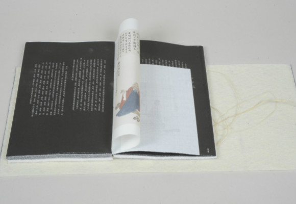 《学而不厌》则是教育类书籍,由江苏凤凰美术出版社出版,装帧设计者为曲闵民、蒋茜设计。它使用传统的宣纸来印刷中国画与书法,部分画页左右上下翻折。而封面用绘画装裱形式制作,裸背装订方式便于翻阅,宛如古籍善本,中国传统文人气息浓郁。
