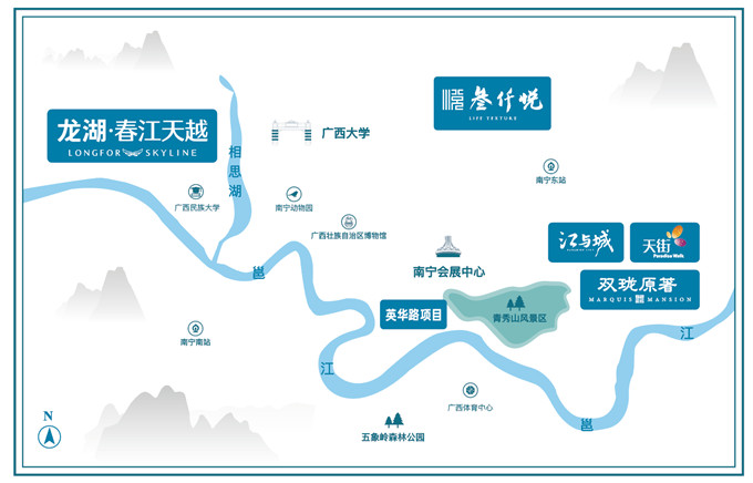 天街,龙湖主要商业品牌,在全国深受认可。江与城,南宁首个天街综合体落址凤岭滨江,约12万方综合体将填补青秀东无大型城市综合体的空缺,天街超级商业旗舰,战略合作品牌超340家,合作品牌超4500家,繁华配套自成一城。龙湖天街,以超强的人流和财富磁吸力,聚拢区域超54.67万人庞大消费力,为南宁再著一座财富核心。
