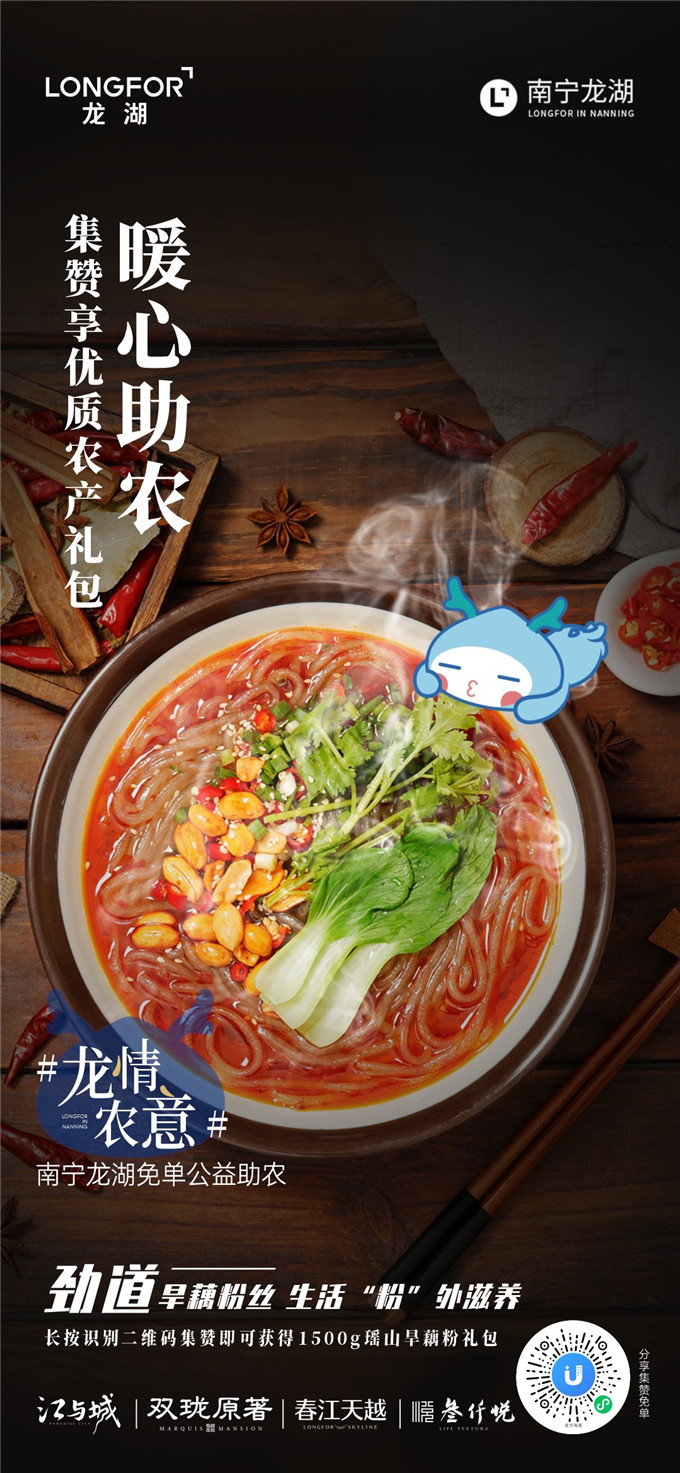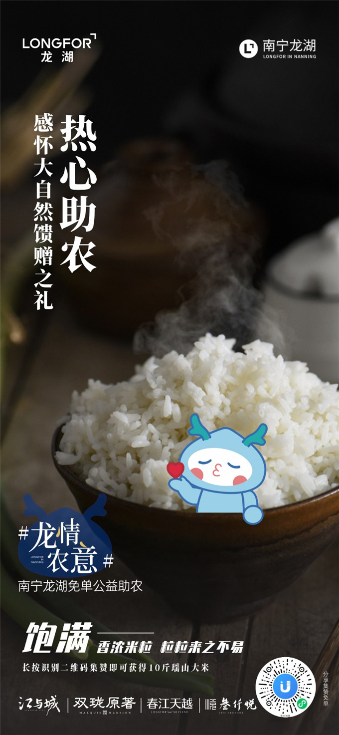 公益不在多寡在乎力行,龙湖入邕以来积极履行企业责任,在公益的道路上从未停止过脚步。南宁龙湖主办的“龙情农意”公益助农活动正在火热进行中,即日起至12月20日,凡龙湖业主及来访南宁龙湖售楼部即可参与集赞免单公益助农活动,来自广西大化县大米、旱藕粉、横县茉莉花茶等优质农产品将原产地发货。南宁龙湖实实在在的惠民之举,引发全民参与热潮。