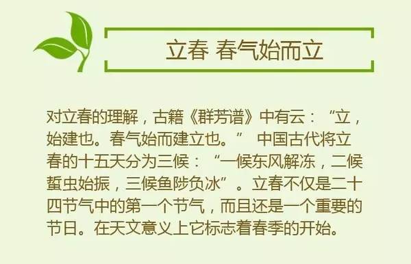 “立”是“开始”的意思,自秦代以来,中国就一直以立春作为春季的开始。立春是汉族民间重要的传统节日之一,立春之日迎春已有三千多年历史。立春时天子亲率三公九卿、诸侯大夫去东郊迎春,祈求丰收。回来之后,要赏赐群臣,布德令以施惠兆民。这种活动影响到庶民,使之成为后来世世代代的全民的迎春活动。我们翻开任何一本老黄历,都能看到,干支年份的变更,不在正月初一,而在立春。