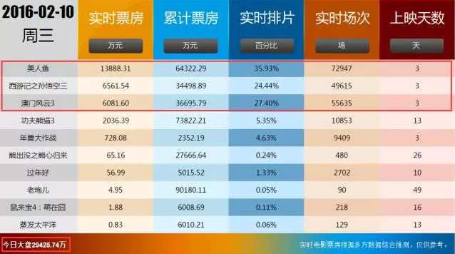 内内看着电影院乌泱泱的人头感叹道:终于体会了今年的IP大战是有多热。猴年春节档3大IP同台大战,票房规模空前,截止到目前为止,整个大盘的票房情况如下: