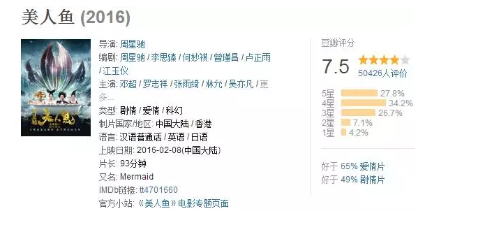 对于这部星爷捂得特别厉害的电影上映后,影评界的出现了两级分化,好的坏的都有。豆瓣上《美人鱼》的评分也不是很高。