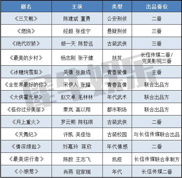 相比去年,留白影视今年的表现逊色不少,重点大剧《天醒之路》无论口碑还是热度,都与《长安十二时辰》相差甚远,所幸,公司已经晋升为视频网站的热门合作方,其与企鹅影视新合作的两部爱情题材网剧《良言写意》《乌云与皎月》,与爱奇艺新合作的当代涉案剧《穿破黑夜》《刑警之海外行动》、古装悬疑剧《风起洛阳》都有望在明年播出。