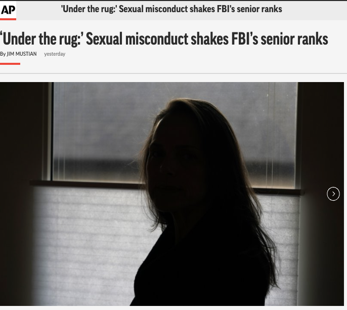 美联社在调查报道中列举了过去5年内FBI发生的6起性侵指控,然而,涉事高官中除1人被剥夺获得机密文件的安全许可权利外,其余几人均未受到到任何相关处分。