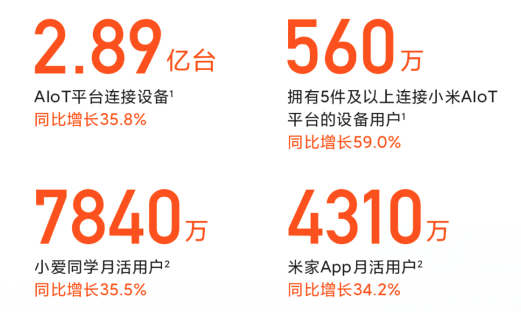 小米三季度财报中的AIoT相关表现