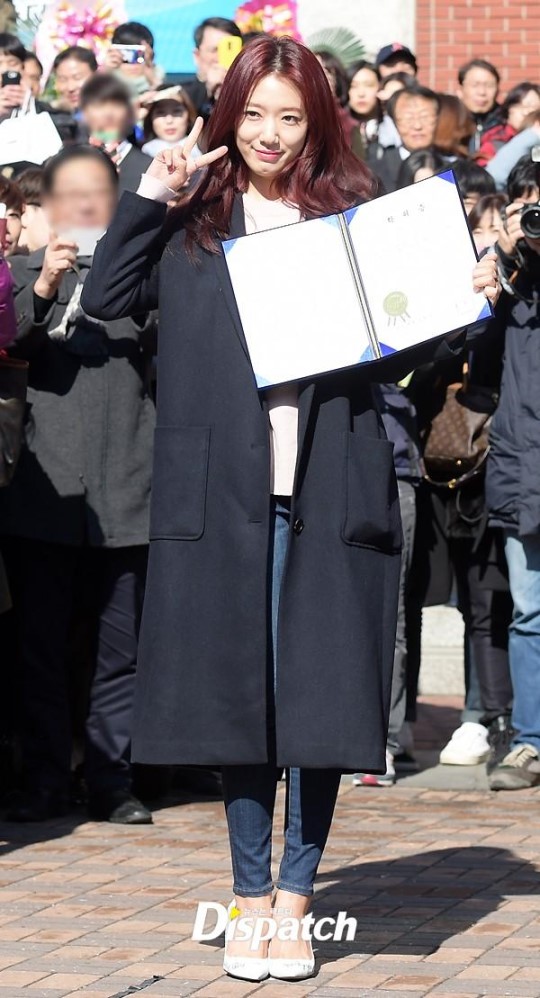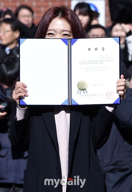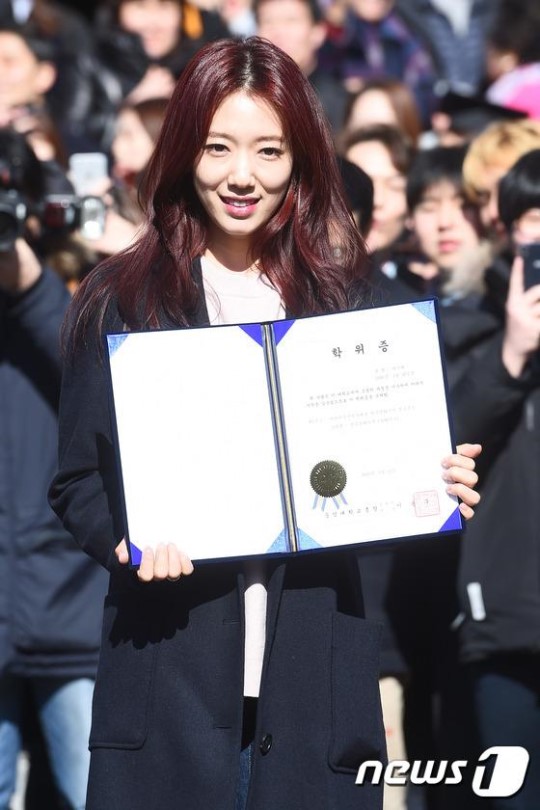 朴信惠2008年便考入韩国中央大学戏剧电影学系,但因事业繁忙,无暇顾及课业,导致整整念了8年才修满学分,今日与“学妹”少女时代俞利、秀英共同出席毕业典礼,引来大批粉丝围观。